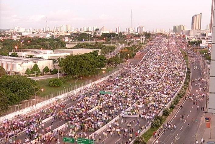 | BR-101 às 17h17 . 8 mil pessoas caminham para o Centro Administrativo |