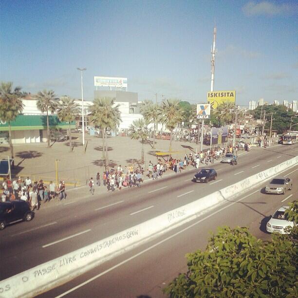| 15h28Parte de manifestantes do Movimento Revolta do Busãocaminha na Salgado Filho x av. Amintas Barros destino BR-101 |